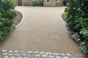 For those looking for something more premium, we install resin bound surfaces. They’re permeable, which means no puddles, and they come in loads of different colours. We also work with concrete driveways, both plain and decorative finishes.